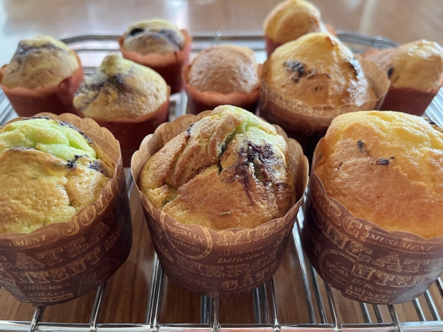 マフィンはイギリス・アメリカ系の焼き菓子で、紙カップや金属カップで焼きます。