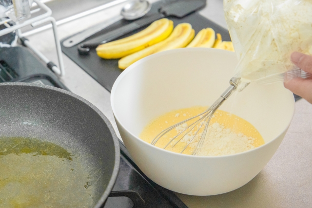 卵なしで作る場合は、バナナをしっかり潰してなめらかなピューレ状にすることが重要なポイントです。