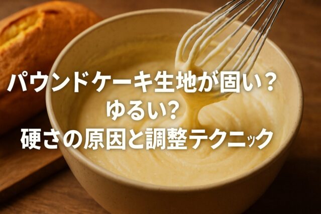 パウンドケーキはシンプルな材料と手順で作れるお菓子ですが、その出来栄えは生地の硬さによって大きく左右されます。