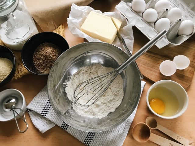 ベーキングパウダーの量や新鮮さによって膨らみ方が左右されるため、計量を正確に行うことが大切です。