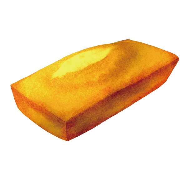 焼き色のついた表面のカリッとした層と、内側のなめらかで湿度を感じる生地のコントラストが特徴で、食べたときの満足感が高い焼き菓子です。